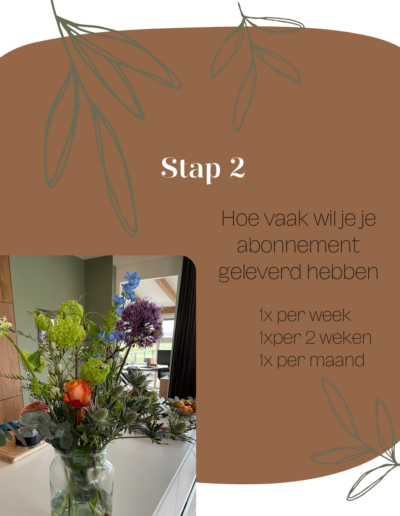 Altijd verse bloemen, zonder gedoe. Een groot boeket voor op de keukentafel of kookeiland, een kleinere bos bloemen op je bijzet- of salontafel. Alles is mogelijk. De bloemen worden schuin afgesneden inclusief bloemenvoeding op een mooie leenvaas bij je thuis bezorgd (ophalen is natuurlijk mogelijk). Dit abonnement is natuurlijk ook leuk om cadeau te geven.